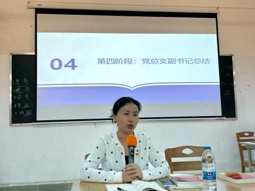 活动伊始,党总支副书记邓欢老师向在场党员师生倾情推荐了两本书,分别为:《百年大党面对面》和《党的二十大报告学习辅导百问》。其中,邓副书记以《百年大党面对面》趣味插图、幽默文字与党史知识相结合的特点,重点推荐了此书,激起了在场师生的阅读兴趣。