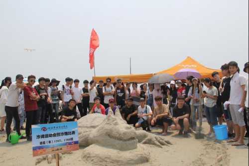 伴随着领导一声“我宣布沙滩运动会正式开始!”熙熙攘攘的人群向沙滩迅速移动。找到自己班级所在的沙雕场地,建立属于我们的大本营。搭遮阳伞,搬水,拿铁锹,大家有条不紊的忙碌着。蔚蓝的大海,金黄的沙滩,来往的游客。今日,我们便是银滩最美的风景。