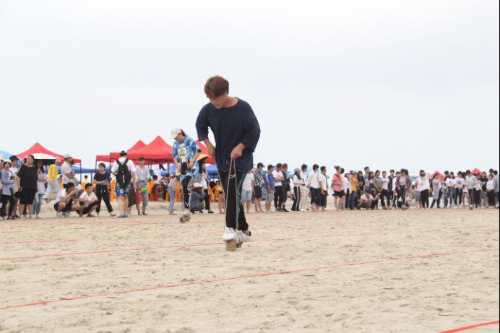 接着,令人紧张又兴奋的比赛开始了。大家一边堆沙雕,一边竖起耳朵听广播通知。“参加八人九足的运动员们,请在八人九足比赛场地集合”大家纷纷起身前往比赛场地。