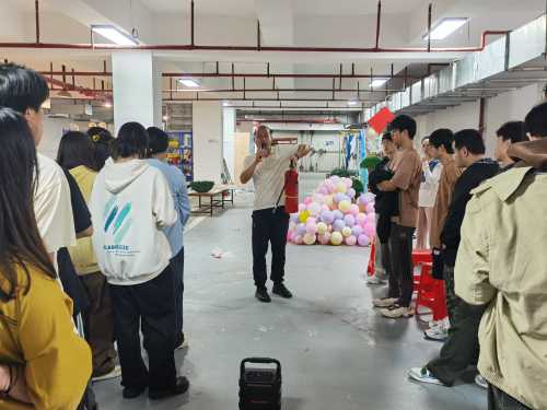 演练前,学校保卫处处长对参演师生进行了培训,结合实地分析了实验室常见火灾风险及防范措施,详实讲解初期火灾扑救方法及使用灭火器操作步骤,如何正确选疏散路线和安全疏散注意事项。(雒健/摄)