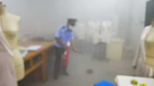 上午9点30分,学生紧急逃生演练正式开始。实训室烟雾弥漫,任课教师指导学生紧急疏散并报警,学生们捂住口鼻,快速疏散至学校操场。保安人员第一时间到达现场,寻找到火源迅速灭火。演习取得了预期的效果。