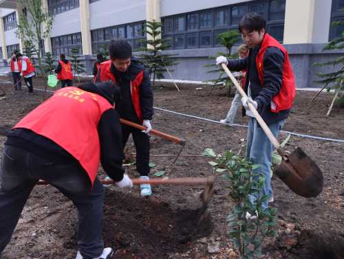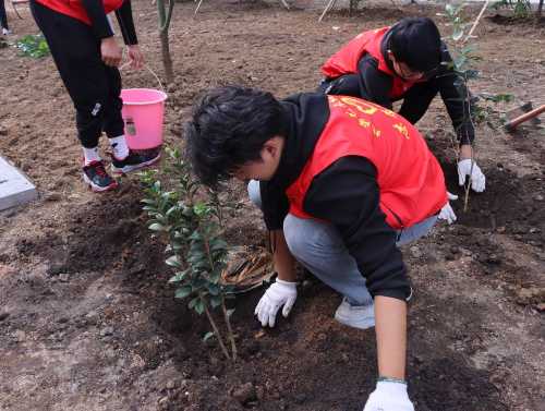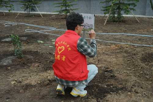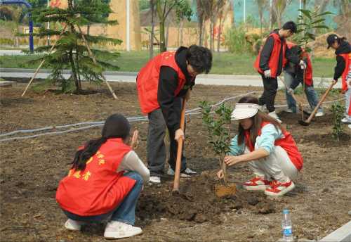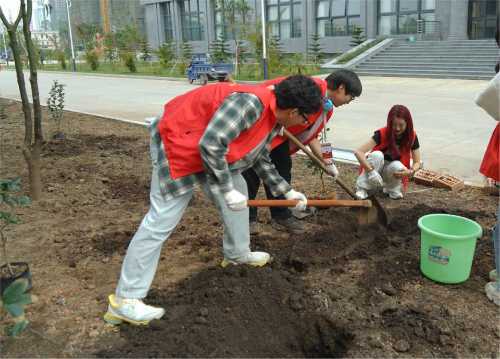 志愿者们植树的背影组成了校园中一道靓丽的风景线,一棵棵小树苗被栽下,南校区被一点点新绿缀满,同学们也在植树的过程中了解到许多有关树木的知识,认识到树木对于环境的重要