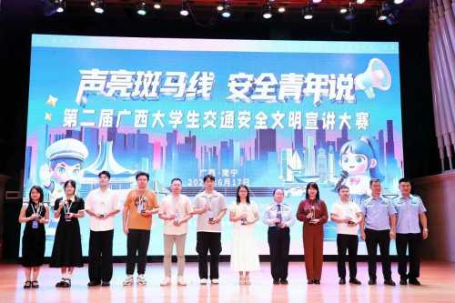 据悉,第二届广西大学生交通安全文明宣讲大赛以“文明交通,携手共创”为主题,旨在深化高校交通安全教育,提升青年学生交通安全意识与责任担当。大赛聚焦《中华人民共和国道路交通安全法》,围绕典型交通违法、规则意识、安全防护等内容,鼓励创新宣讲形式,传播文明交通理念。我校参赛团队紧扣赛事主题,深入挖掘交通安全知识与地方特色文化融合点。该宣讲分为四个部分:辨电动车牌照属性避无证驾驶、示范头盔正确佩戴讲清防护要点、模拟大货车盲区演示避险距离、快板口诀“蓝牌无照、头盔必戴、货车远避”等,场景化展现交规知识,凭借原创性、实用性优势,在众多参赛作品中脱颖而出,荣获佳绩。