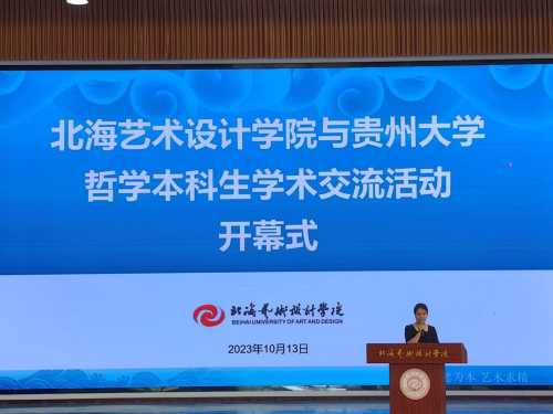 2023年10月13日,北海艺术设计学院与贵州大学哲学专业交流活动开幕式在北海艺术设计学院大礼堂举行。本次开幕式由北海艺术设计学院主办,贵州大学领导和师生受邀出席。