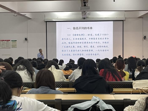 为提高我院学生文学阅读能力,培养学生勤学求新意识,5月12日晚,王勇教授应邀为我院师生做了一场题为“从鲁迅开列的书单谈起——我们应该怎样更好地学习古代文学”的讲座。本场讲座旨在探讨学习古代文学的方法,引起了学生的广泛关注。人文教育学院汉语言文学专业全体师生参加了本次讲座,讲座由汉语言文学教研室副主任姜玮主持。