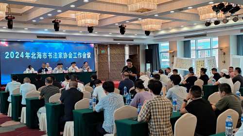 为进一步促进北海市书法发展,北海市书协于6月29日下午举办2024年北海市书法家协会工作会议暨“龙游墨海”大型书法义卖义拍活动。广西书协主席杨科云,北海市文联党组书记、主席刘蒙平,北海市书协主席陈美东以及包括书法学院教师在内等120余名北海书协会员出席活动。