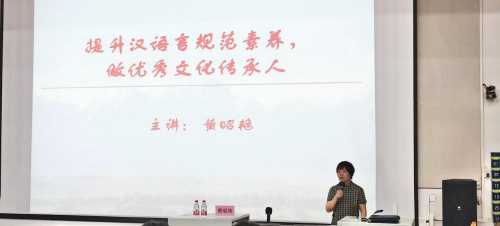 讲座伊始,黄昭艳教授以第27届推普周为切入点,指明了推广普通话以及促进汉语言规范化的重要意义,呼吁同学们作为新青年要承担起传承优秀文化、推动社会发展的责任与使命。