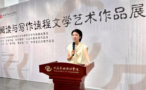 (文学院常务副院长梁镨文为阅读与写作课程文学艺术作品展致辞)