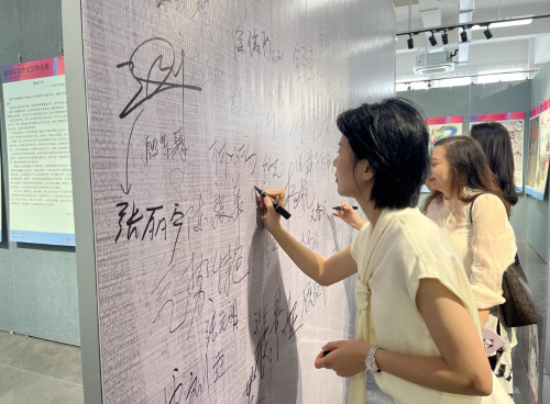 值得一提的是,本次展览还特别设置了文艺展签名墙环节。师生不仅可以在现场欣赏作品,还可以进行签名或书写寄语。这一环节不仅增加了展览的趣味性和互动性,也进一步提升了师生的参与感。