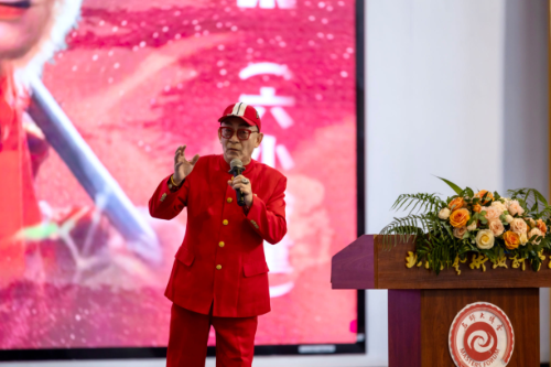 2024年12月5日,一级演员、中国著名表演艺术家六小龄童——章金莱老师受邀来到北海艺术设计学院,为全校师生带来主题为《〈西游记〉文化与美猴王精神》的精彩讲座。本次讲座由文学院主办,常务副院长梁镨文主持。
