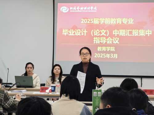 艺术教育专业和学前教育专业于2025年3月11 日至13日开展毕业论文中期汇报工作,参与答辩的老师包括院长熊秀峰、艺术教育教研室副主任周劲志、教务办主任黄海林、艺术教育专业老师赵华教授、学前教育专业雷蕊老师。同时,为了更好地帮助学生完成学业和就业,,各位老师于3月14日进一步深入地开展了个人论文和就业指导工作。
