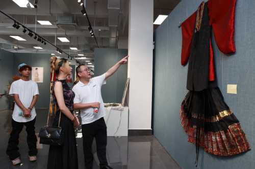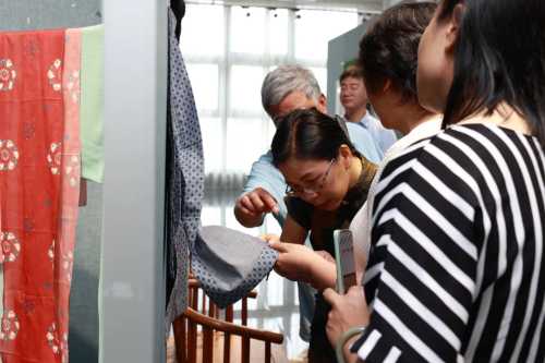 开幕式结束后,出席开幕式的领导嘉宾及师生一同步入展厅,共赏明韵风华,近距离欣赏了学生亲手制作的服装作品。