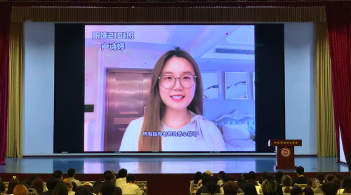 2021级学生代表卢诗婷、黄一娴、徐家琪、张丹分享了自己在毕业设计中的感悟,她们回顾了三年来的学习历程,感谢学校提供的广阔平台和老师的悉心指导,并表示未来将继续努力,不忘初心,将所学知识与时代需求相结合。