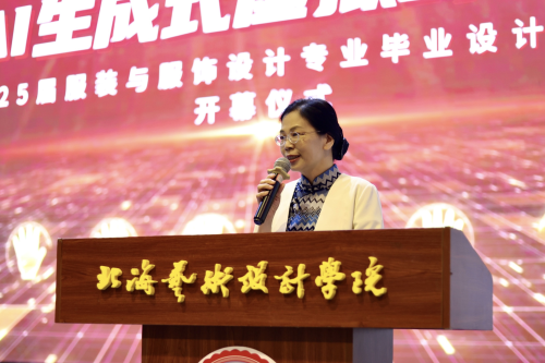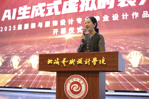 开幕式上,校党委副书记陈毅华在致辞中表示,服装专业作品融合了AI生成式虚拟技术,将传统元素与AI技术相融合,用时代语言讲述着中国故事,这正是文化自信在专业实践中的鲜活体现,此次虚拟时装秀更彰显出非凡的意义。她强调,新时代的设计仅要追求美学价值,更要承担社会责任和时代使命。希望同学们秉持以美育人,以文化人的理念,用设计去传递中国精神,用创新服务社会需求。