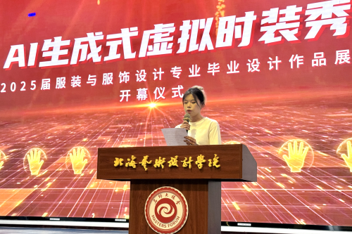 5月26晚上,北海艺术设计学院服装学院“溯·AI生成式虚拟时装秀”暨2021级优秀毕业设计作品展在西区大礼堂拉开帷幕。北海艺术设计学院校长卢新华,学校党委副书记陈毅华出席开幕式。