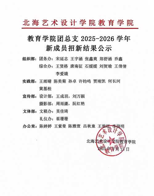 附:教育学院团总支2025-2026学年新成员招新结果名单: