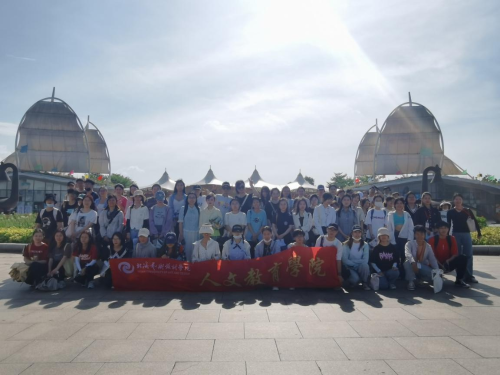 (人文教育学院汉语言文学专业、哲学专业2019级师生于园博园大门合影)