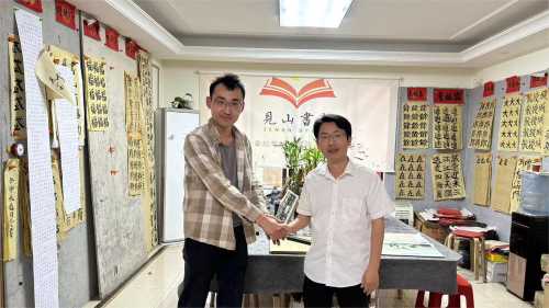 此行对广西规模最大的儿童美术教育机构之一的广西南宁见山教育咨询有限公司进行参观考察。该公司在南宁有数十处教学基地,主要针对少年书法方向、国画方向开展教学培训工作。校企双方均期待以校企合作的形式为双方进一步深层次合作的开展搭建平台,在表达对企业院校人才培养新思路的探究下,签订校企合作协议。签约双方就书法学专业毕业生就业问题及专业发展前景展开讨论,并一致达成“平等协商,互惠互利”的合作方针,根据书法学专业就业需求,制定就业实习计划,全面保证学生就业质量。(李东垚 摄)