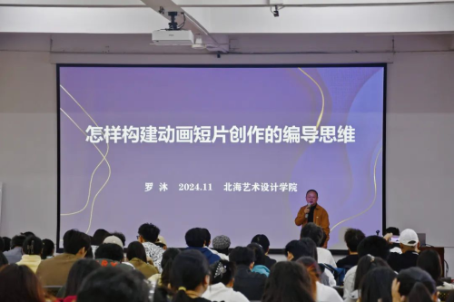 讲座伊始,罗沐教授聚焦于“如何构建动画短片创作的编导思维”,与在座的师生进行了深入探讨。他强调,动画领域是技术、艺术与商业的三位一体,这要求动画专业人才必须具备综合性的思维能力。这种特性不仅赋予了动漫产业强大的品牌影响力和跨行业联动能力,而且在意识形态方面也具有潜在的塑造作用。