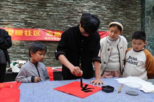 两院师生们以其精湛的书写技艺,不仅展现了书法艺术的魅力,更吸引了众多社区居民驻足欣赏,投入到书法艺术之中。现场呈现出其乐融融的景象。很多居民热情高涨地参与书写春联与“福”字。老师们更是倾囊相授,他们手把手地指导小朋友书写对联。在老师的耐心引导下,小朋友们逐渐掌握了书写技巧,稚嫩的笔触下,一个个充满童趣的汉字跃然纸上,虽然笔法稍显青涩,但字里行间却满是喜悦。不少居民感慨道,手写春联不仅彰显了对传统文化的深深敬意与传承,更为即将到来的节日增添了一抹浓厚的喜庆氛围。认为这样的活动不仅传递了节日的祝福,更拉近了邻里之间的距离,让传统文化在社区中焕发出了新的生机与活力。