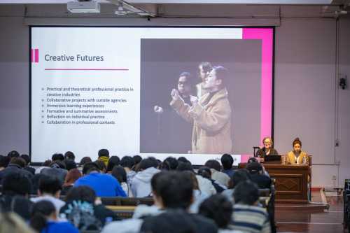 穆雷院长还通过多个创作案例向师生们展现了切斯特大学在动画与数字媒体领域的跨界实践。切斯特大学学生作品《修补与改造》联动加纳Slum Studios、利物浦Open Eye画廊及本地慈善组织,将二手服装升级为艺术装置,推动可持续时尚与社区联结;动画短片《边界之间》融合数字技术与公共艺术,在社区空间创作互动投影,探讨文化认同议题。她特别提及校友Lili Sipeki凭借“校服升级改造”项目斩获Redress设计大奖,以及Alexandra Novacki将传统剪裁与现代数字设计结合登上《Vogue》的案例,印证“教育-实践-产业”闭环培养模式的实效。