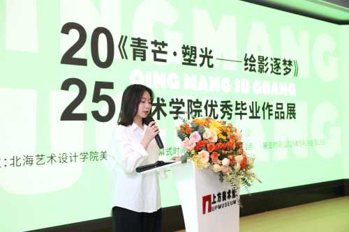 开幕式的最后,由北海艺术设计学院党委书记覃宪儒宣布《青芒·塑光——绘影逐梦》北海艺术设计学院美术学院2025优秀毕业作品展正式开幕。