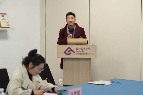李林平院长向到场嘉宾致以诚挚的欢迎并介绍学院的概况。设计艺术学院以“立德树人”为核心,围绕学校依托北海北京3+1双城育人、双名(名校、名师)引领的办学模式。通过深化“产教融合、专创融合、专思融合”三融合,构建通识教育、创新创业与素质拓展、专业教育和实践教育四模块的课程体系,采用理实一体化、教学项目化、培养合作化、评价多元化,质监常态化等教育教学方法。自治区级基层教学组织“传承非遗·创新海丝”文化创意教学研究团队创建了“文化文创文旅、共情共鸣共享‘双侧体验’”的人才培养模式。即通过艺术设计专业链与文创文旅产业链、理论教学环境与职场实践环境、校内教学过程与企业工作过程、课程作业内容与市场行业标准对接,开展教学改革,构建情境育人与文化共情、产教融合与文创共鸣、校企合作与文旅共享的三递进课程模块与教学模式,并展示视觉专业相关教学成果。最后,他希望各位专家能够与我院建立起长期交流机制,为学院在设计艺术方面的人才培养、教学创新等方面提宝贵意见和建议,并预祝本次研讨会取得圆满成功。