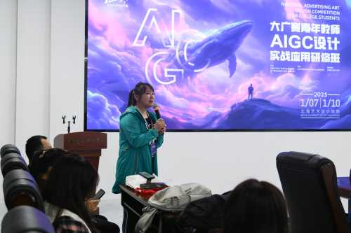 2025年1月7日,全国大学生广告艺术大赛(简称“大广赛”)“青年教师AIGC设计实战应用研修班”在我校艺德楼8楼会议室拉开帷幕。此次研修班由全国大学生广告艺术大赛组委会、大广赛文化传播(北京)有限公司主办。来自全国各高校的50余名教师齐聚于此,将参与为期4天(1月7日至1月10日)的培训学习,共同探索AIGC设计领域的新知识与新技能。