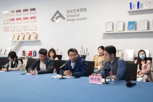 在随后的交流环节中,与会教师们纷纷向陈艺锋教授请教问题,分享自己的心得。白建强副院长对AI技术在设计领域教学中的影响给予了高度重视,与陈教授就如何更好地结合AI技术提升设计教学的质量和效果进行了深入交流。视觉传达设计专任教师曾竹竹谈到了如何引导学生正确使用AI工具的问题,她认为教师应注重理性、正向的引导,避免学生陷入过度依赖的困境。