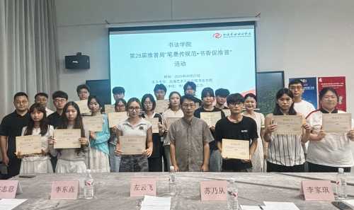 墨香未尽,书声可期。至此,书法学院宿舍规范汉字书写比赛暨推普成果展示活动圆满落幕。此次活动不仅丰富了学生的校园文化生活,更让推广国家通用语言文字的理念在书法实践中落地生根。未来,书法学院将继续深化“书法+推普”特色模式,让规范之美、文化之韵在校园中持续回荡,为铸牢中华民族共同体意识贡献书法的专业力量。