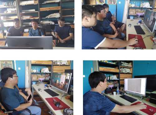 9月22日-9月23日,石教授在绘画教研室老师的陪同下,给19级油画方向的同学在网络上播放录制的作画视频,并展开全程讲解。(张湘中 摄)