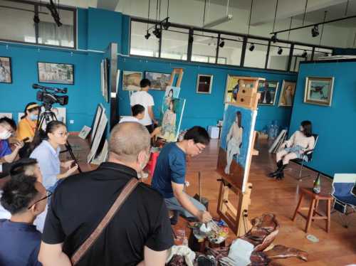 9月17日,绘画教研室联合摄影专业老师在绘画工作室为石强教授录制《油画全身像写生》课程的教学视频。