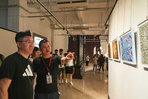 开幕后各领导、教师和学生进入展厅进行观展,师生们展开了热烈的讨论,馆内学术氛围高涨。