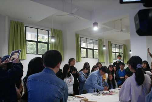 蔡教授通过幽默的语言热情地为学生们答疑解惑,现场气氛和谐,融洽欢乐与掌声并存。此次范画活动令现场师生受益匪浅,也为美术学院的教学环境做出了良好的氛围提升。(陈建江 摄)