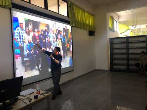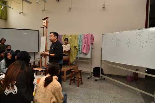 谈到构图时,计宇教授用苹果和梨的形状为例,边示范边讲解了内外轮廓相结合,二维到三维从形到型的转变,确认明暗交界线,区分亮部暗部已经色彩的搭配运用,令同学们受益匪浅。