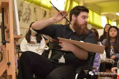 迪伦主任指出,作画最重要的一步是构图,在创作人物画时,要用心观察周边环境,与模特交流,感受模特身上特有的气质与形象,再着色下笔。随后迪伦主任示范了如何构图、调色、铺色、深入。
