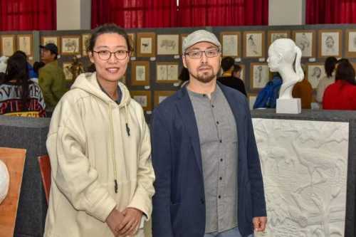 此次展览有老师和学生作品,其中作品除了有雕塑作品 还有一些绘画作品。进入展厅老师和学生的作品令我们惊叹, 在场的师生无不细细品酌每件作品的精妙之处,给我们带来 了一场视觉艺术上的饕餮盛宴。
