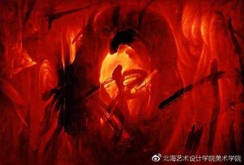 讲座开始,梁教授表示很高兴也很荣幸来到我院,给同学们分享他的一些研究心得。梁教授首先向我们介绍了他的学习背景,梁教授擅长油画、国画、书法、摄影并涉足多媒体影像制作和装置艺术。并表示自己学的内容虽然杂,但并没有被其所影响。提出我们要将复杂的背景融合在一起,再创造、创新这一观点。随后梁教授向我们展示了一副融合狂草书法、水墨画、摄影、设计、数码科技、东西方哲学思想的一副综合性艺术作品——《聚合大系》