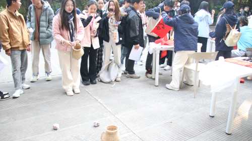 活动现场通过投壶、春联接龙、春联对对碰、体验书写春联等趣味游戏的方式,让大家感受校园文化与传统文化相结合的活动乐趣。