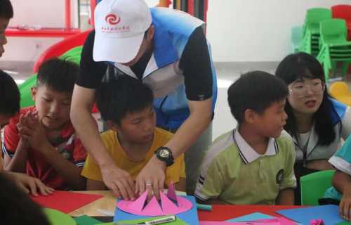 在美术课堂中,人文教育学院分团委书记史晓菲老师运用民族元素,利用涂、捏、粘、贴等方法带领学生共同了解纸浆画的制作过程。并且主动引导学生将颜料、彩泥、饰品与纸浆画相融合,通过巧妙搭配色彩、图案,进而制作出具有当地瑶族特色的民族娃娃。