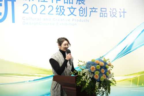 随后,文创产品设计课程主课老师吴慧霞上台发言,她对学生们的创意和努力给予了高度评价,并强调了教育在培养学生创新思维和实践能力中的重要作用。同时,学院将继续推动产教融合、校企合作,拓展更多的实践机会和展示平台,为同学们提供深入社会、体验生活的机会。