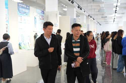 开展仪式上,陶立阳副校长在致辞中强调本次展览深入贯彻了全国教育大会精神,全面展示了同学们在视觉艺术创作上的卓越成就,生动诠释了学校“以德铸魂、以文化人、以美育人”的素质教育理念。他提到,文创产品设计课程应利用人工智能技术推动多元文化交流,探索设计服务地方经济的新路径,为地方文化产业注入新的活力。