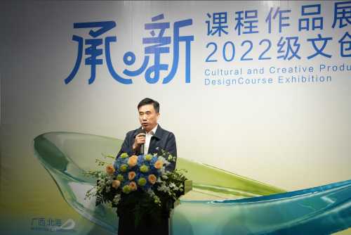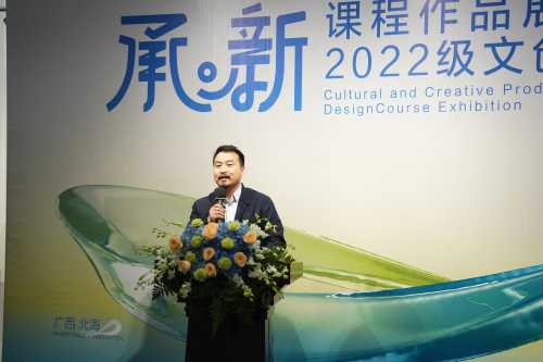 11月22日上午,设计艺术学院视觉传达设计专业 “承·新” 2022级文创产品设计课程作品展在学校南校区艺德楼8楼北侧展厅拉开帷幕。出席开幕式的有:学校副校长陶立阳、桂林电子科技大学北海校区设计与创意学院院长葛俊杰、合浦汉代文化博物馆馆长廉世明、北海远见传媒集团副总经理王斌、北海远见传媒集团副总经理廖艺艺、北海银方健康产业有限公司副总经理崔玉丰、创新创业学院副院长陈渤水、设计艺术学院党总支书记黄锦、院长李林平、党总支副书记林秀琪、副院长白建强、李佩、邓渠成、吴慧霞,以及马振庆、郭强、彭馨弘、傅颖哲等教授及任课教师和2022级学生。开幕式由视觉传达设计专业教师王昳凡主持。