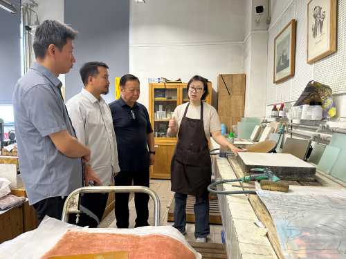 调研组首站赴清华大学美术学院实地考察。在张夫也教授的带领下,调研组深入参观了视觉传达设计实验室、首饰工艺实验室、版画工艺实验室、印染工艺实验室、纸张艺术实验室、陶瓷艺术与设计实验室、金属工艺实验室等7个实验室。其先进的设备、科学的布局和高效的运行模式,为学院智能设计实验室建设及应用型艺术设计人才培养提供了重要参考借鉴。