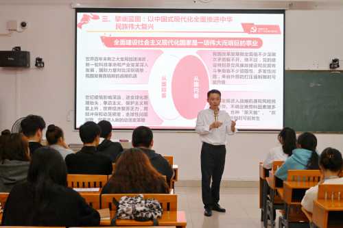 刘承初委员围绕“继往开来:处于关键时刻召开的一次重要大会”、“伟大变革:过去五年工作情况和新时代十年成就”“擘画蓝图:以中国式现代化全面推进中华民族伟大复兴”“青春力量:为全面建设社会主义现代化国家而团结奋斗”四个内容进行宣讲,指出,党的二十大是在全党全国各族人民迈上全面建设社会主义现代化国家新征程、向第二个百年奋斗目标进军的关键时刻召开的一次十分重要的大会,我们党带领全国各族人民在新时代十年取得举世瞩目的辉煌成就,在以中国式现代化全面推进中华民族伟大复兴的征程中,要深刻认识到这是一项伟大而艰巨的事业,作为新时代的青年,要勇于担当使命,为建设社会会主义现代化强国贡献青春力量。