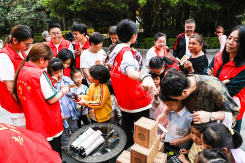 活动现场,志愿者们迅速行动起来,展现出积极向上的精神风貌。折扇手绘区,志愿者们用手中的笔帮助小朋友们在扇面上写下文明标语,深入浅出的引导小朋友们理解“为人民服务”的精神。该活动吸引众多居民驻足欣赏,更有不少居民亲自参与,在志愿者指导下体验创作乐趣。此外,还有雷锋小知识竞猜环节,题目融入了文明创建和雷锋精神的元素,鼓励居民在抢答过程中积极思考,领悟雷锋精神内涵。