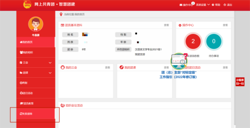 1.登录“网上共青团·智慧团建”系统。网址:https://zhtj.youth.cn/zhtj/ signin个人初始登陆密码为身份证号后8位。