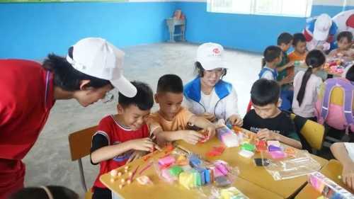 6月15日下午,北海艺术设计学院支教关爱服务团在北海市合浦县石湾镇小学开展手工、音乐、绘画、口才小课堂,乡村小学校园文化墙绘设计等活动。将自己所学专业知识技能教授给红锦村小学的同学们,让同学们学有所得,把艺术课程带进红锦村小学。