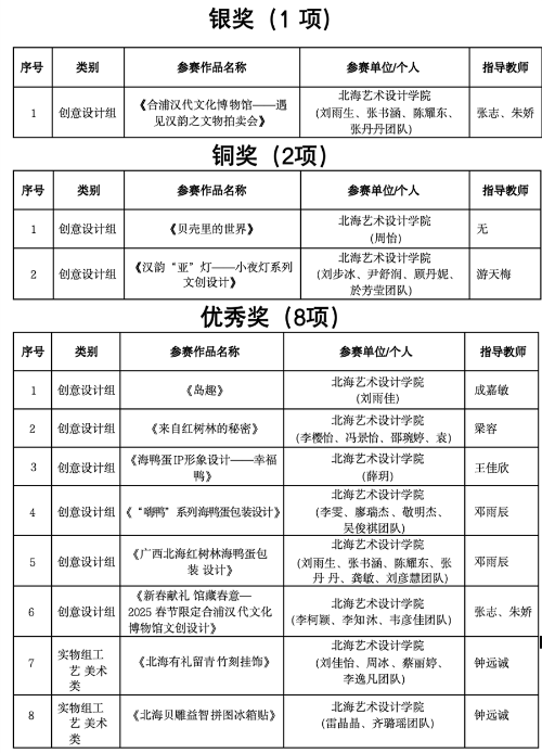 喜报丨设计艺术学院在2024年“北海有礼”特色旅游商品大赛中喜获佳绩