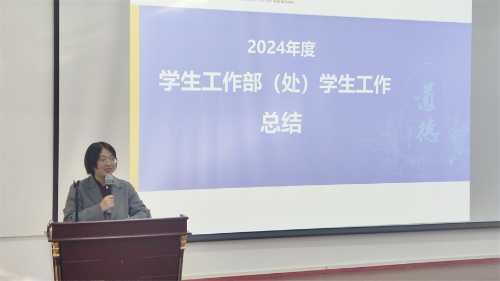 学生工作部(处)部(处)长班媚从学生日常管理、思想政治教育、心理健康教育、学生资助育人等方面进行全面总结,详细梳理了工作亮点与不足,同时,对未来的学生工作提出新的要求和展望。她指出,过去一年,学生工作部(处)扎实推进学生管理队伍建设,稳步推进一站式学生社区建设,二级学院在学生工作上主动性不断提升,努力为学生提供更好的发展平台。但存在学工管理人员能力有待提升、学风建设有待加强、学生心理问题突出等问题。她表示,学工部(处)将继续优化辅导员考核方法,并强化工作责任制度,精心制定出行之有效的学风建设实施方案,全面提升学生的学习风气,根据实际需求丰富心理健康教育的形式,建立心理类的辅导员工作室,培养一支能够处理复杂心理危机的专职辅导员队伍。